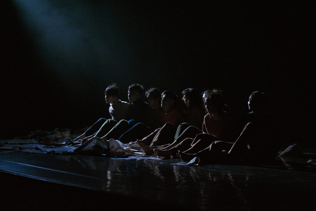 他豐富的言詞中一向含著年輕人的理想和痛,洋溢的青春、桀驁又吊兒郎當地好看——包括在流暢的劇場編寫和肢體的傳達中。每到細緻處,又貼心得令人心碎;如他自導自演的在斗室裡的《牡丹》。這回,一點不顯空盪的全開舞台傳來不時on & off的歌聲;許久才發現出自陳情男一一堆積的抗議民眾的「屍堆」持續唱著,一如年輕人的嘶喊時常不為人聽到。